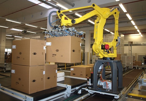 紙箱碼垛生產(chǎn)線客戶現(xiàn)場