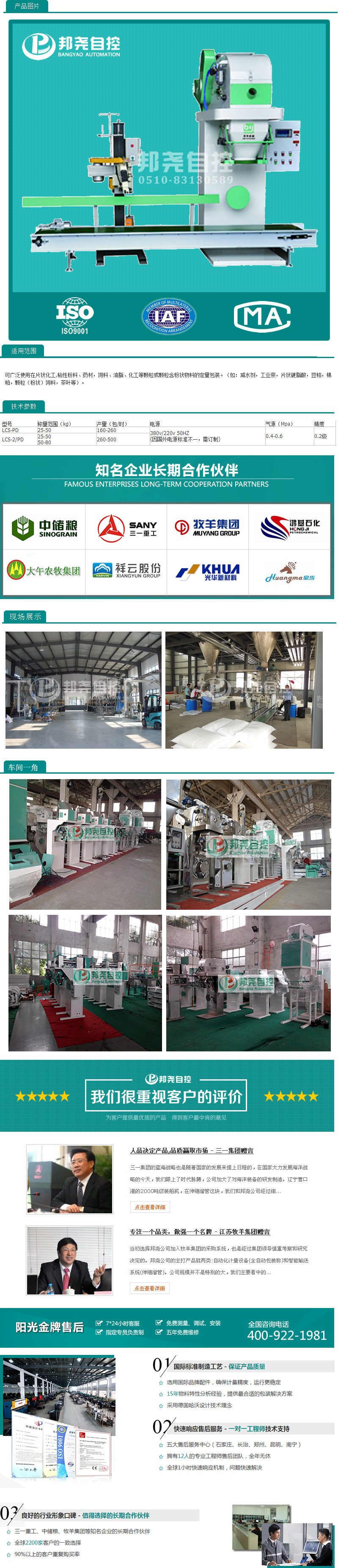 可廣泛使用在片狀化工,粘性粉料、藥材,飼料、油脂、化工等顆粒或顆粒含粉狀物料的定量包裝。(如:減水劑,工業奈,片狀硬脂酸,豆粕,棉粕,顆粒(粉狀)飼料,茶葉等)。