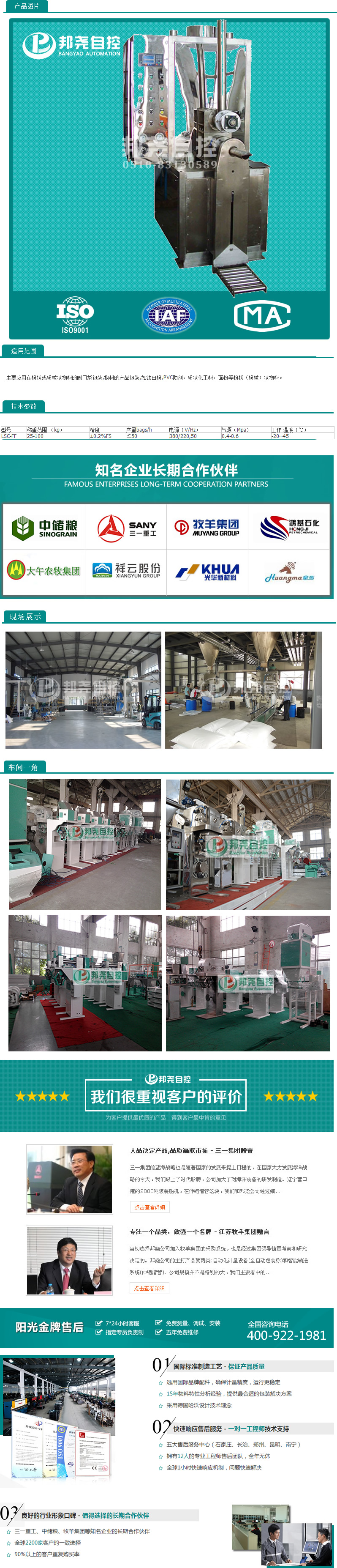 主要應(yīng)用在粉狀或粉粒狀物料的閥口袋包裝,物料的產(chǎn)品包裝,如鈦白粉,PVC助劑,粉狀化工料,面粉等粉狀(粉粒)狀物料。